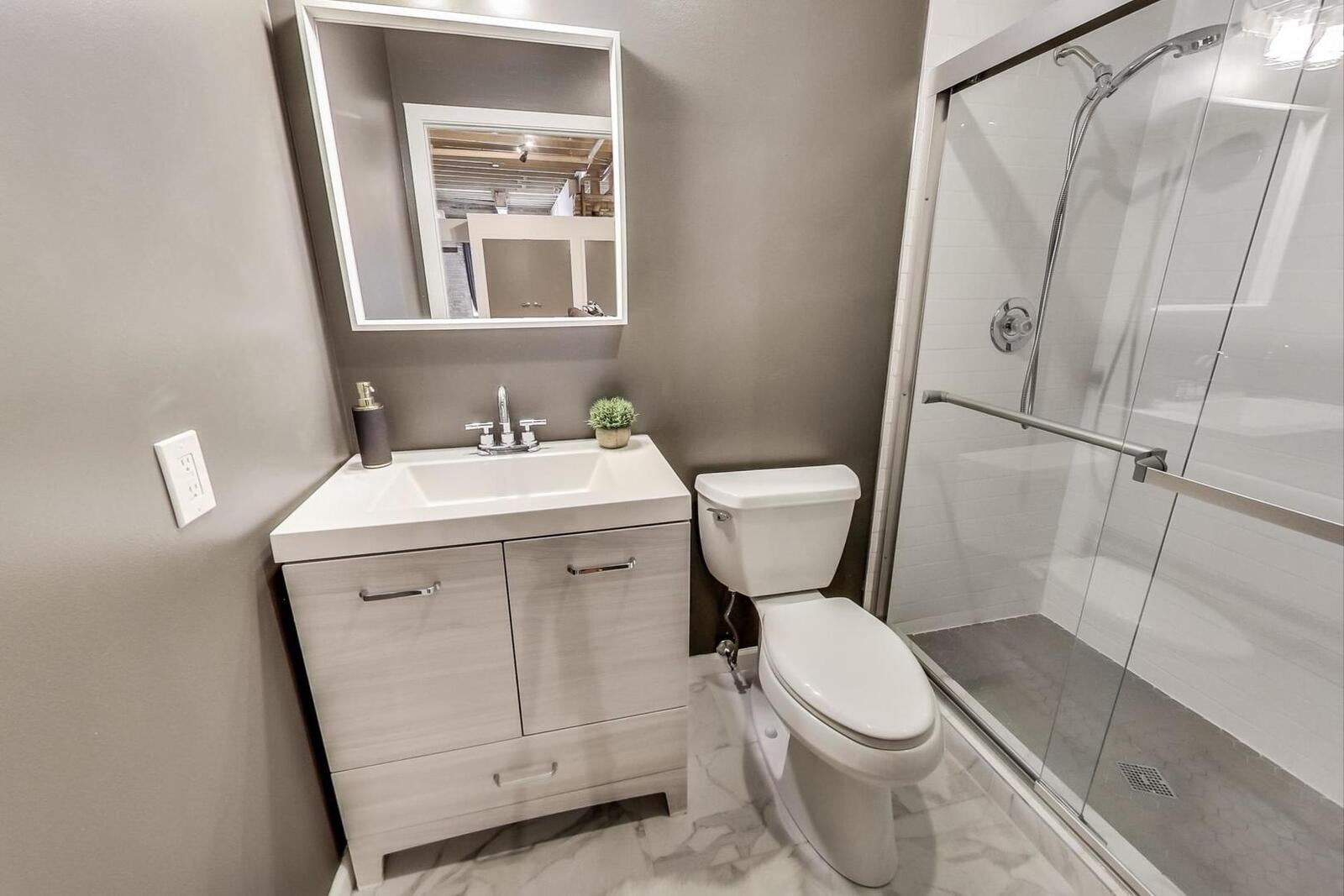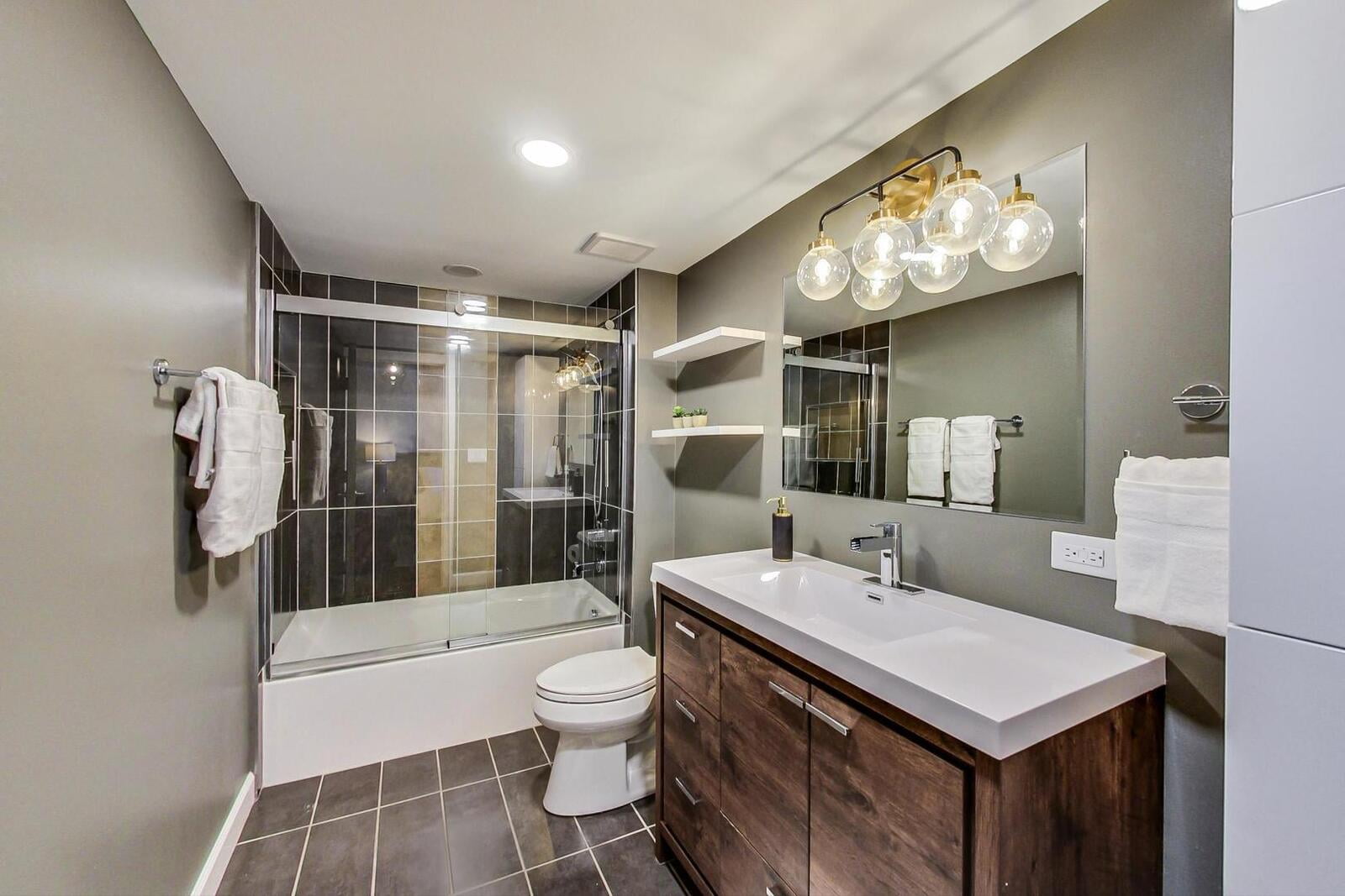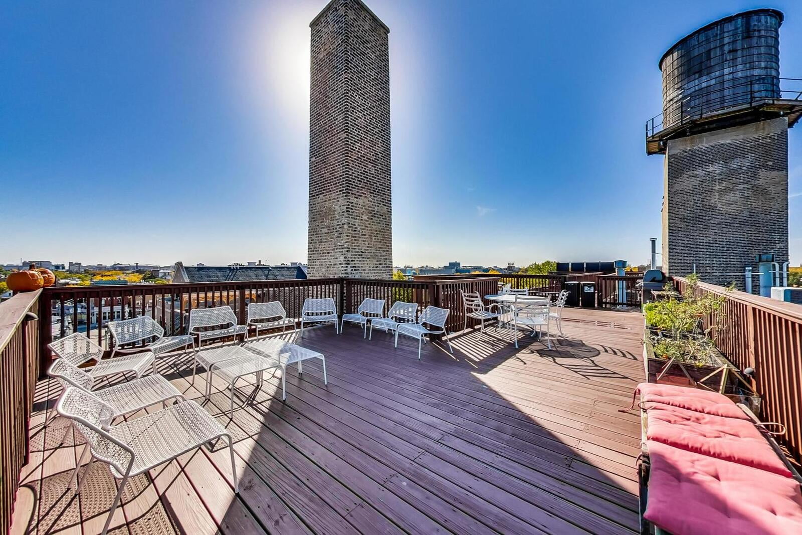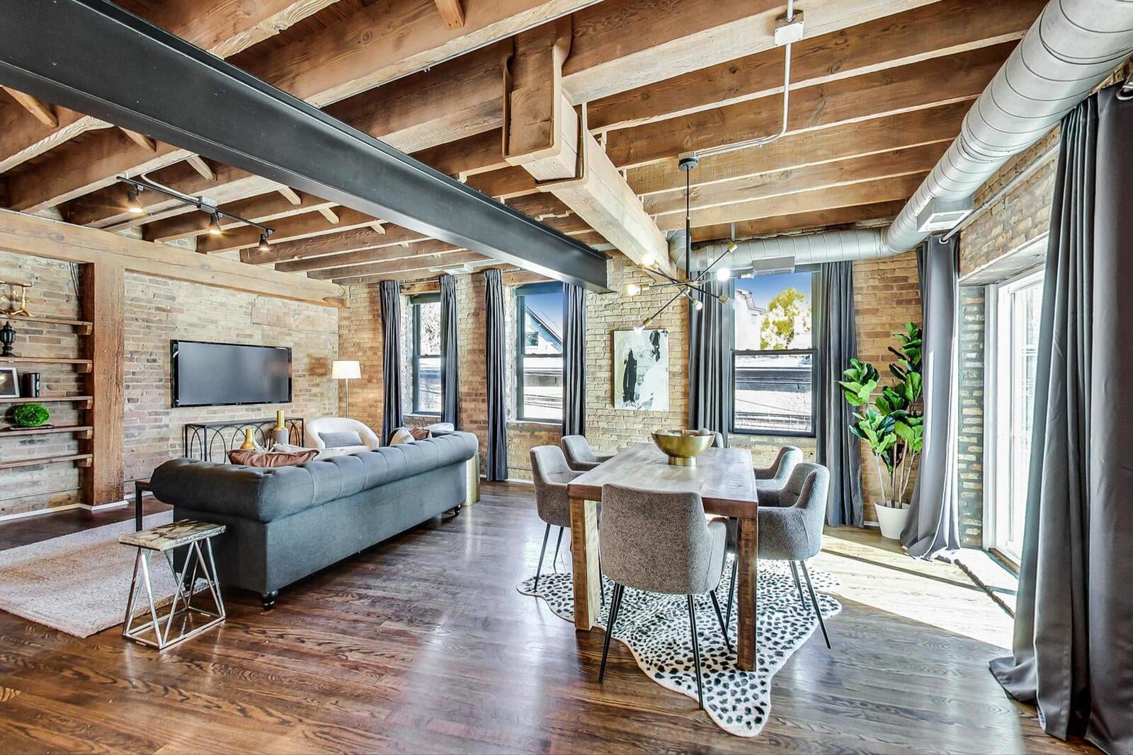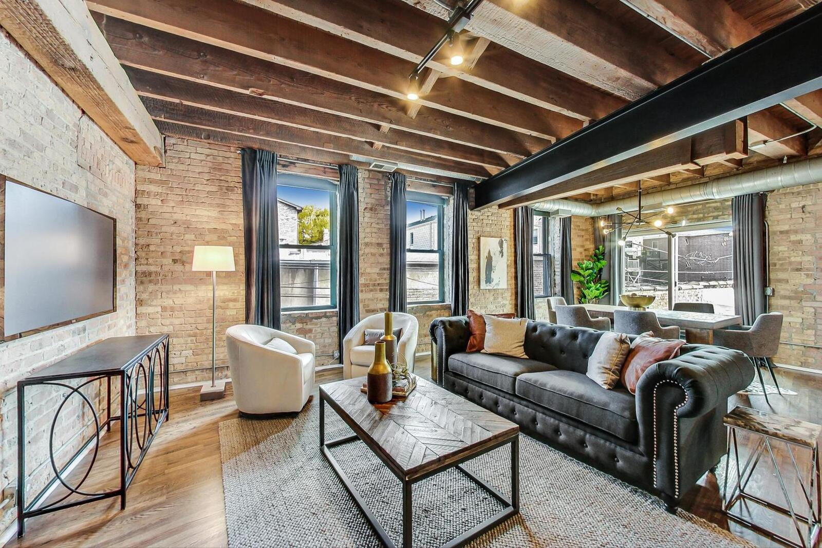 BEAUTIFULLY renovated timber loft duplex in a boutique elevator building! Elegantly modern updates include fresh paint, all new light fixtures and refinished hardwood floors. The BRAND NEW exquisitely designed chef's kitchen makes it the stunning centerpiece in the open-concept main living space--perfect for entertaining! Thoughtfully-designed, it features white 36" soft close cabinets with gold-accent handles, quartz countertops, Bosch appliances and a waterfall island. Facing south and west provides abundant natural light for the open-concept living/dining area. Also on the main level is your spacious master with a WIC and updated en suite bath, including a rain shower and modern finishes throughout. Make your way to the lower level with soaring 14 ft ceilings, an oversized second living space, and two additional loft bedrooms. Walk right out to your heated, private parking space in the attached bow truss garage. Top it all off with the stunning skyline views from the rooftop deck and city living doesn't get any better!!
